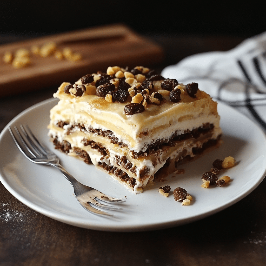 The idea of turning these flavors into a “lasagna” dessert likely emerged from the trend of layered desserts that gained popularity for their ease of assembly and beautiful presentation. Layered desserts like icebox cakes, trifles, and dessert lasagnas allow home cooks to blend different textures and flavors in a visually appealing way.